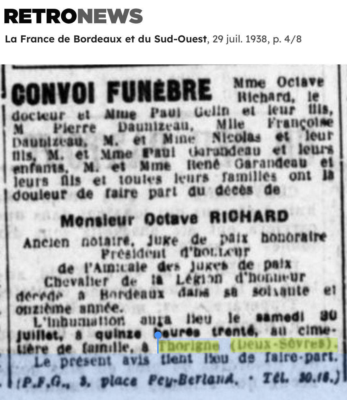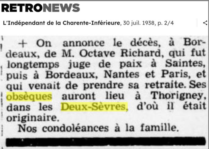 père RICHARD François est DCD à THORIGNE à