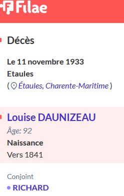 Louise DAUNIZEAU est née le 22/04/1871 à BRELOUX