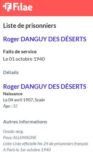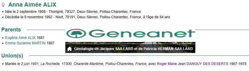 ROGER DANGUY DES DESERTS 1907 – 1978 ANNA ALIX EPOUSE DANGUY DES DESERTS 1908 - 1922 |