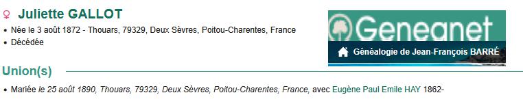 Juliette GALLOT épouse HAY (1872/1898) |