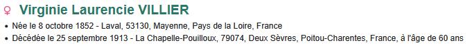 VILLIER Virginie née en 1854 Décédée en 1913 |