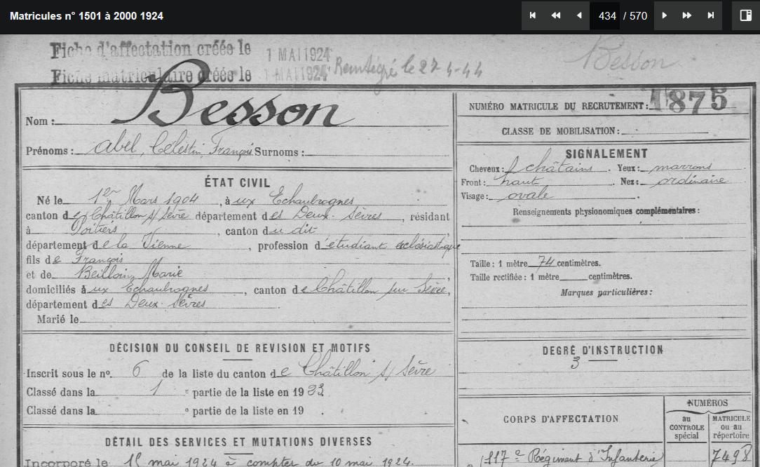 CI-GIT Mr L'Abbé BESSON 1er AUMONIER DE L'HOSPICE « GATEBOURSE » 1904 – 1960 |