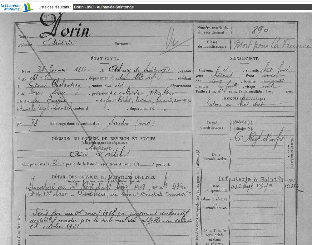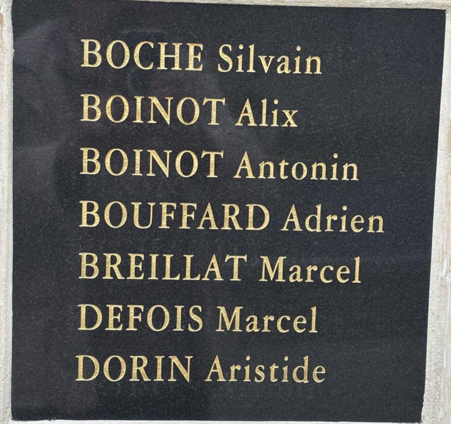 DORIN Arisitide n'était pas encore inscrit sur le monumnt aux Morts avant cette cérmonie mais il figurait sur le livre de pensions