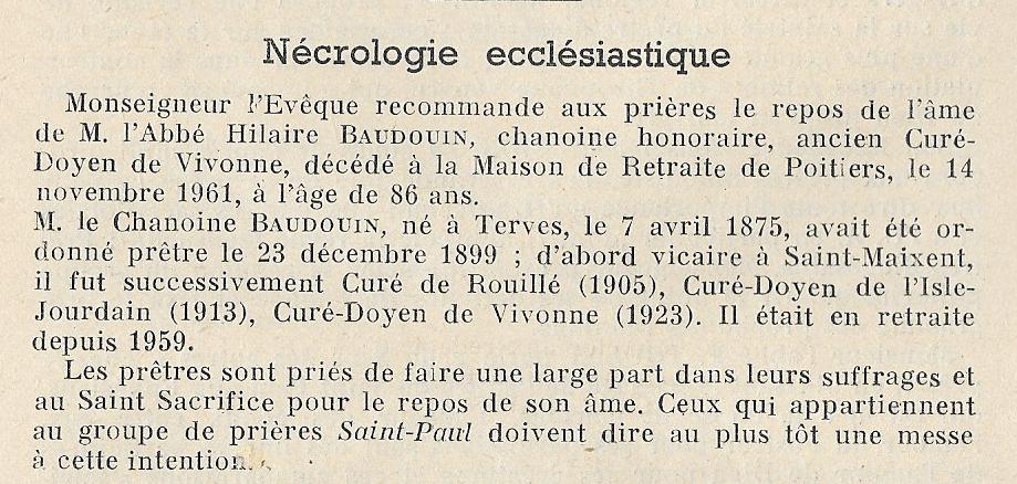 Chanoine BAUDOUIN Hilaire (1875/1961) |