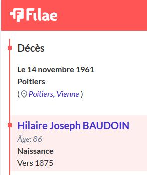 est-il enterré avec sa sœur ? (1923/1959) = dates de sa présence à VIVONNE |