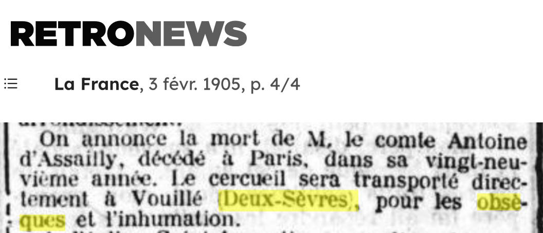 le 15 octobre 1832 - Vouillé, 79, à l'âge de