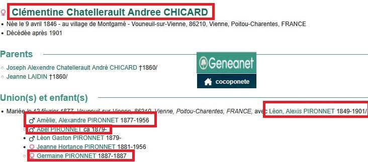 CLEMENTINE CHICARD EPOUSE LEON PIRONNET – LEON PIRONNET – GERMAINE PIRONNET |