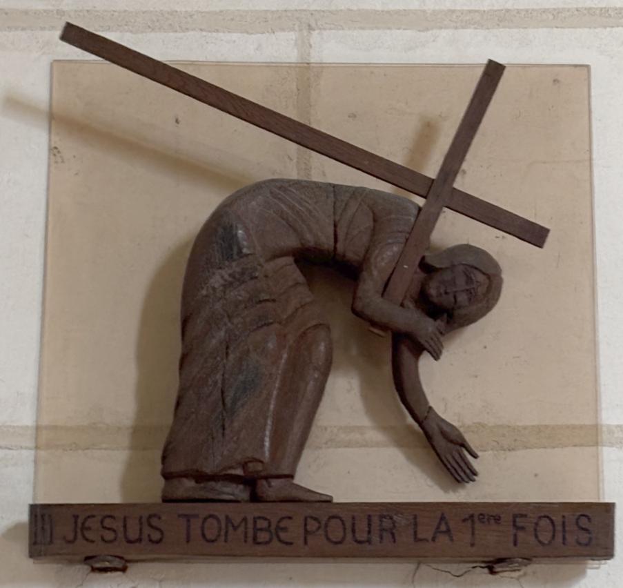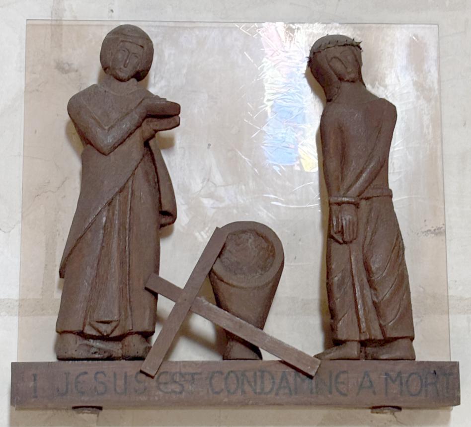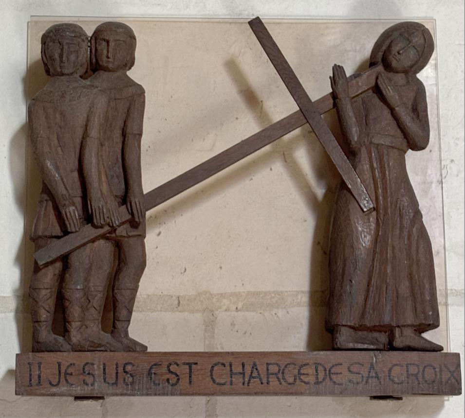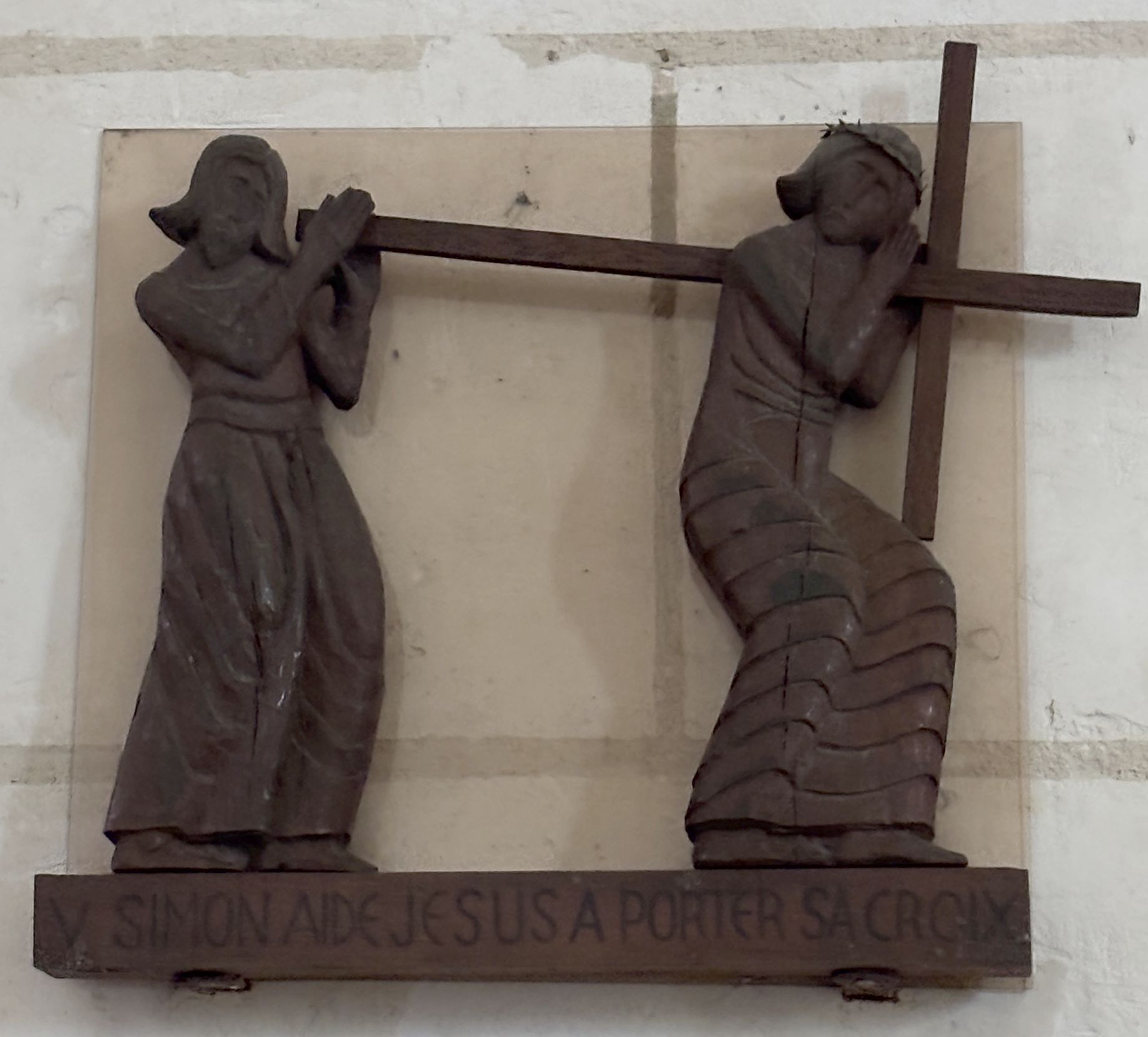 5e station : Simon de Cyrène aide Jésus à porter sa croix. |