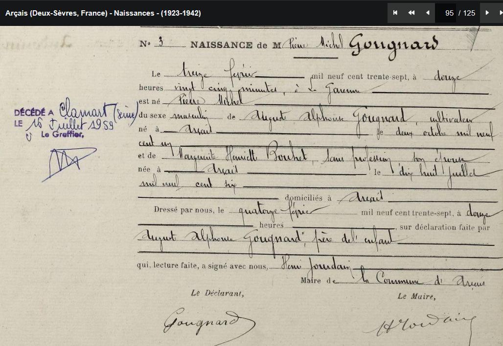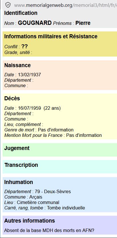 PIERRE GOUGNARD 13 FEVRIER 1937 16 JUILLET 1959 REGRETS |