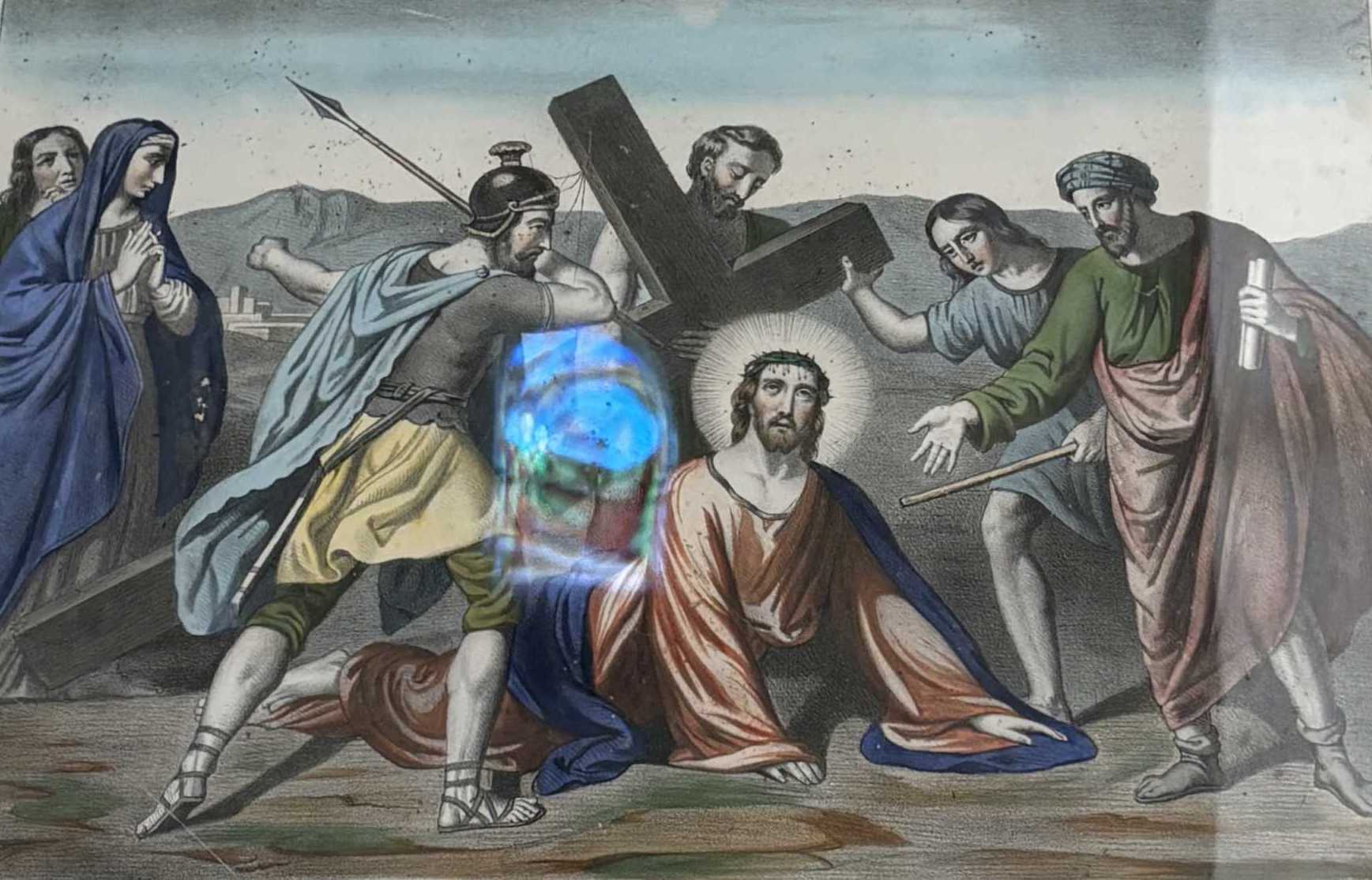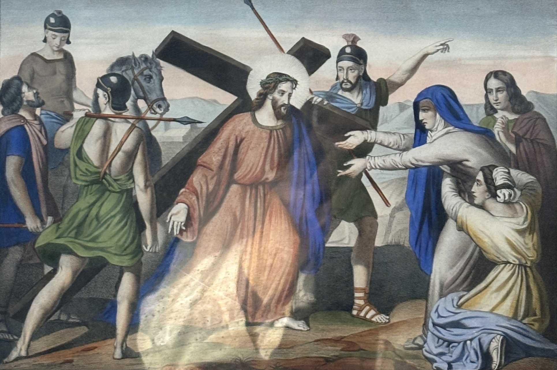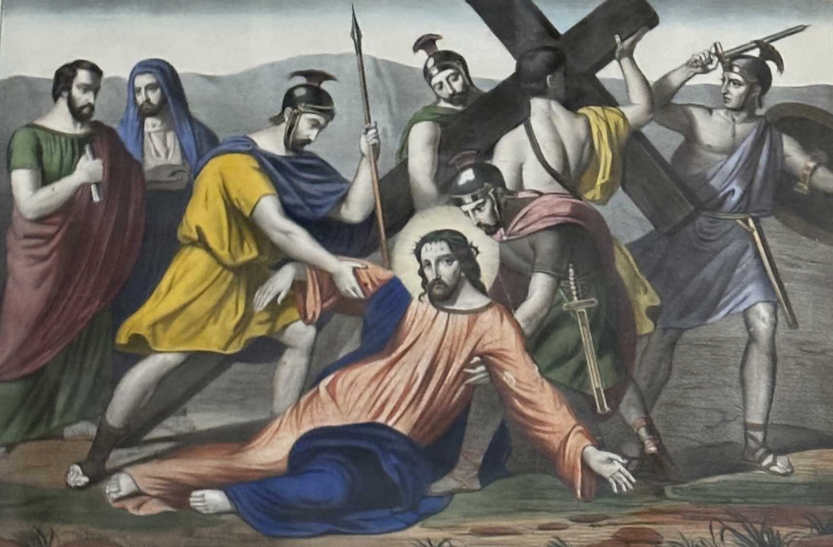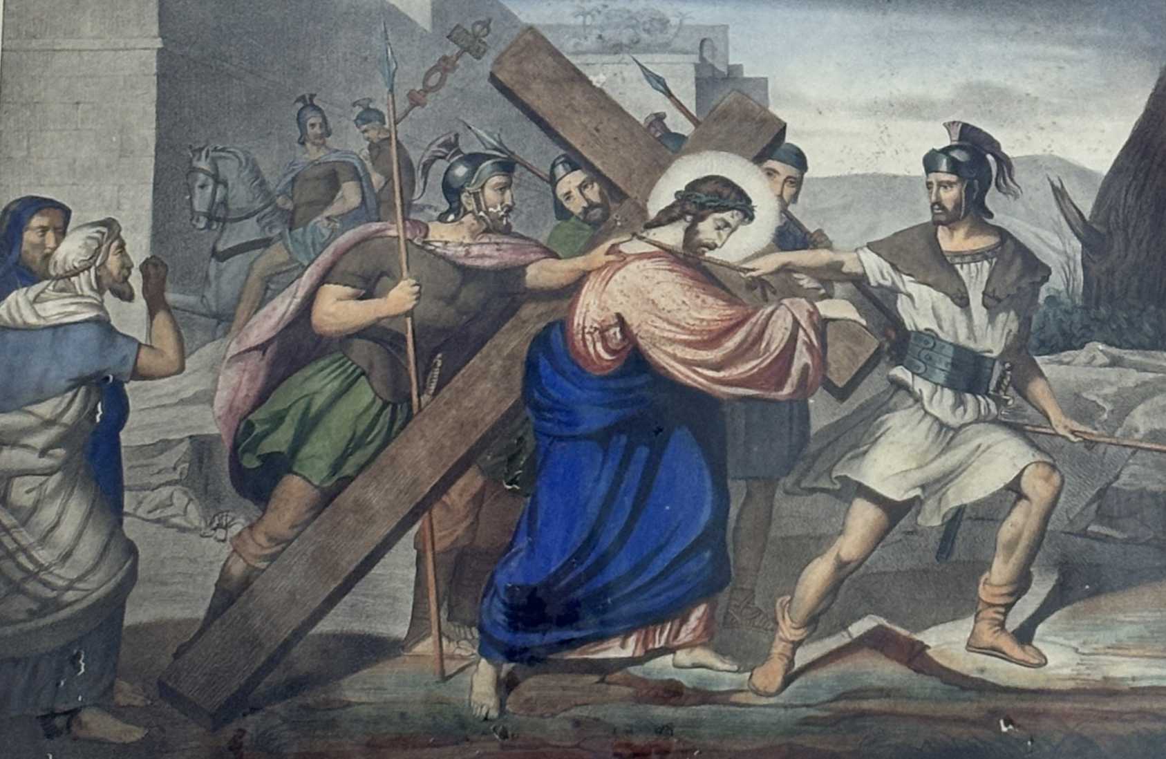 5e station : Simon de Cyrène aide Jésus à porter sa croix. |
