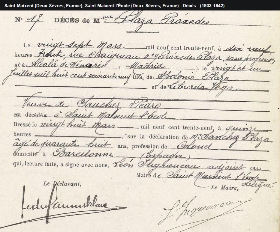 PRAXEDES PLAZA VEGA décédée le 27 mars 1939 Repose en Paix Mère Tes fils ne t'oublieront jamais |