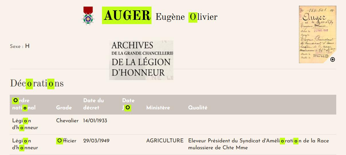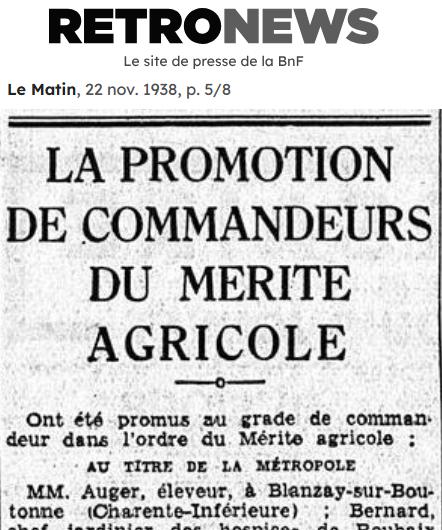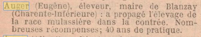 AUGER OLIVIER 1874 – 1951 OFFICIER DE LA LEGION D'HONNEUR MAIRE 1917 - 1951 |