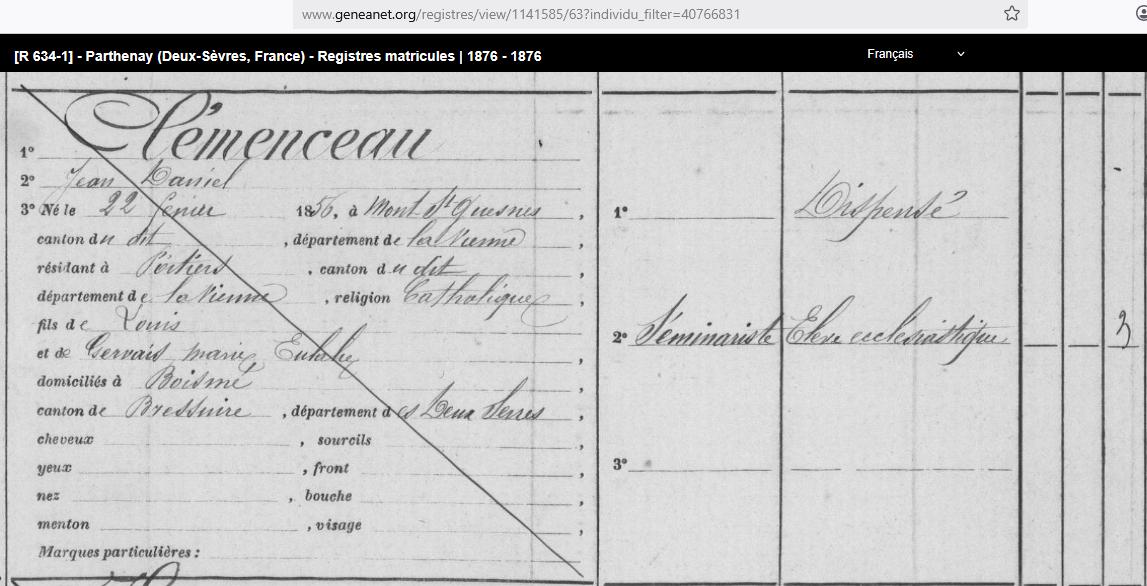 Biographie de l'abbé CLEMENCEAU Daniel ==>>