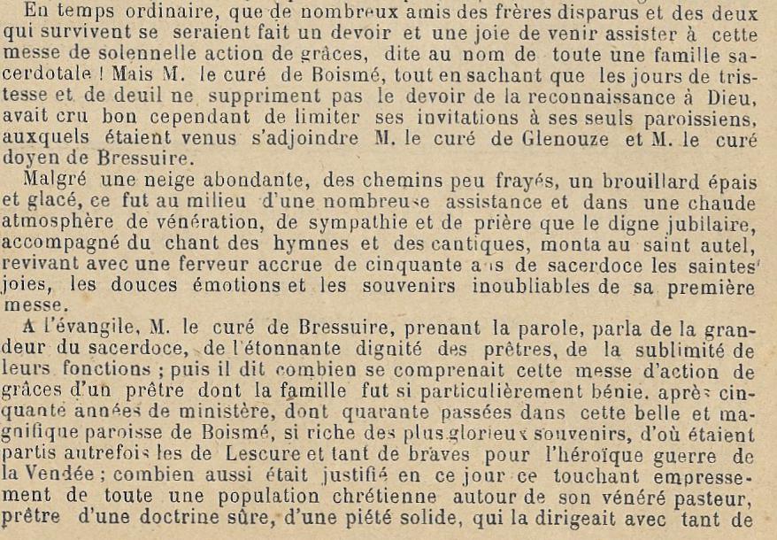 Ici repose le corps de l'abbé Ferdinand CLEMENCEAU Curé de Boismé 1877 – 1920 décédé le .. Février 1920 dans sa 77e année Reqiescat in pace