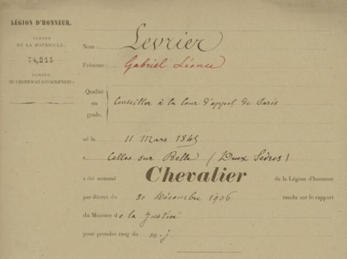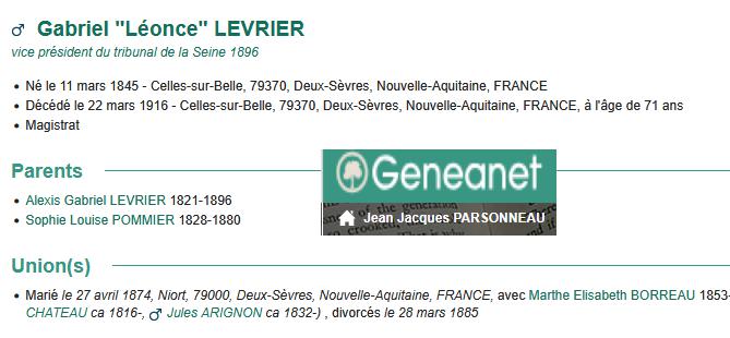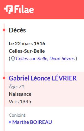 Son père : LEVRIER Gabriel (1821/1896) ==>>