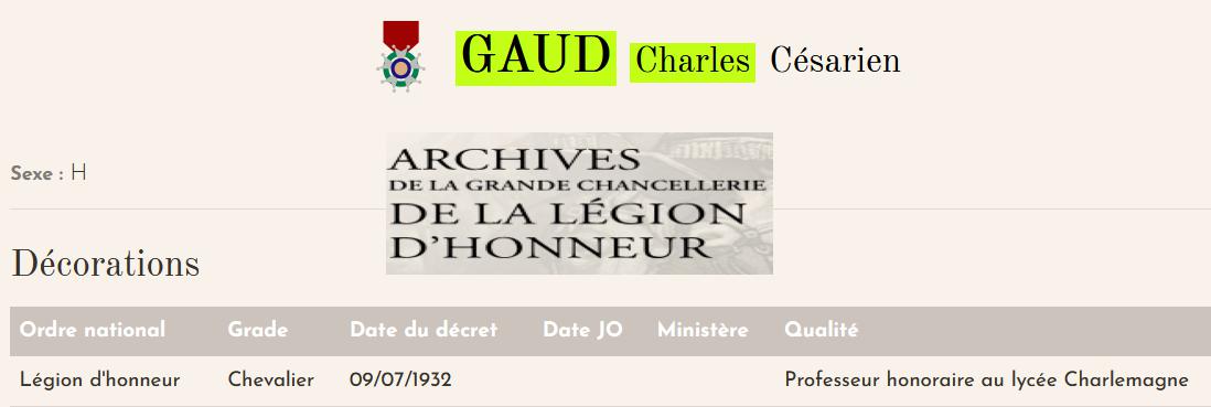 Charles Césarien GAUD professeur Honoraire au lycée Charlemagne de PARIS