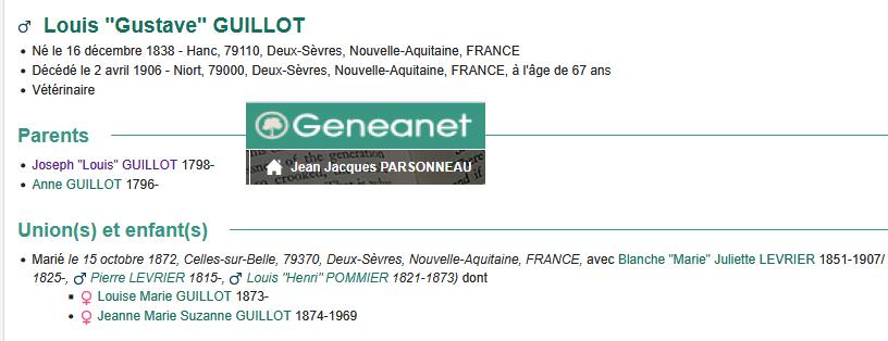 fils de GUILLOT Louis et de Anne GUILLOT époux de LEVRIER Marie était vétérinaire à CELLES |