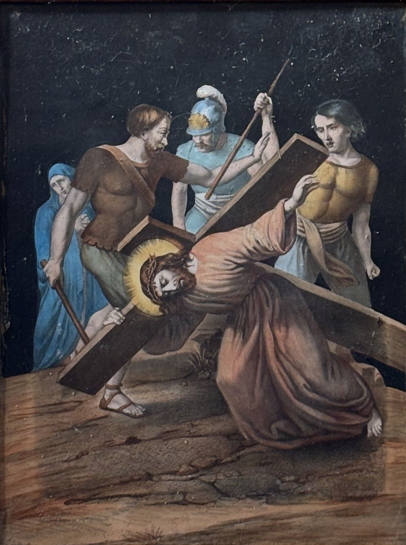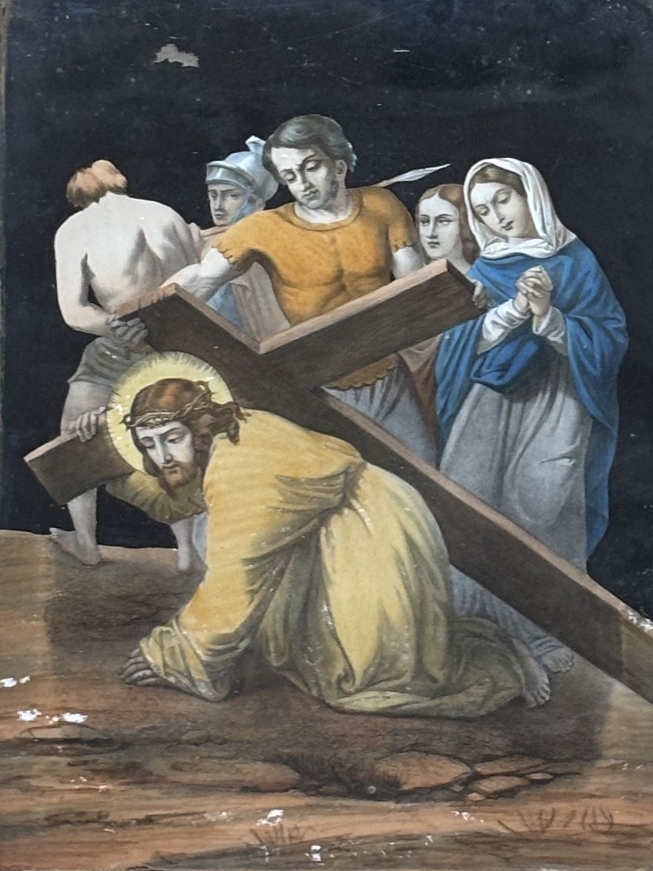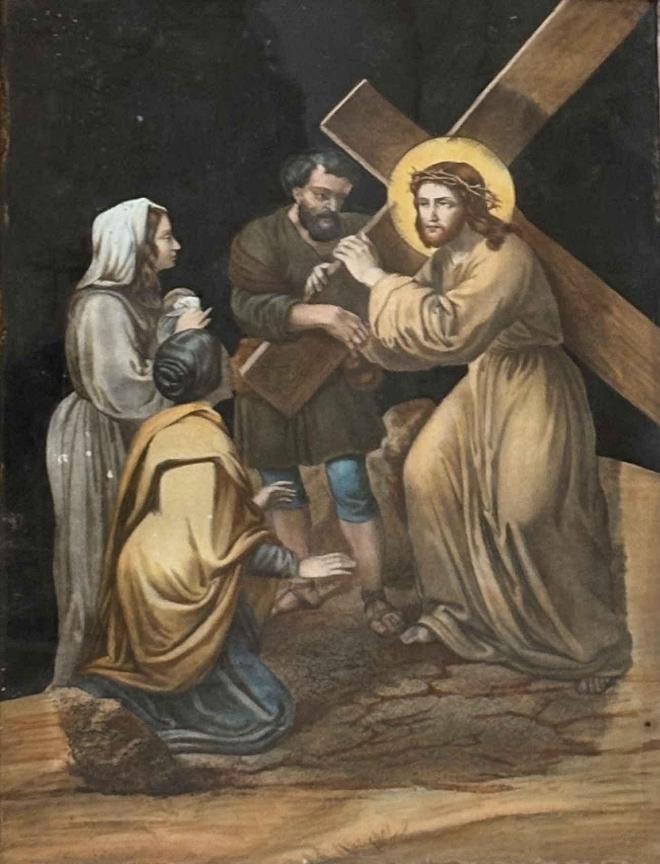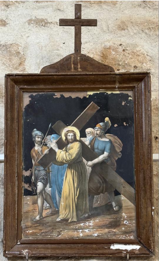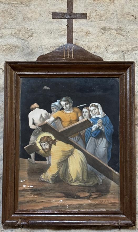 5e station : Simon de Cyrène aide Jésus à porter sa croix. |
