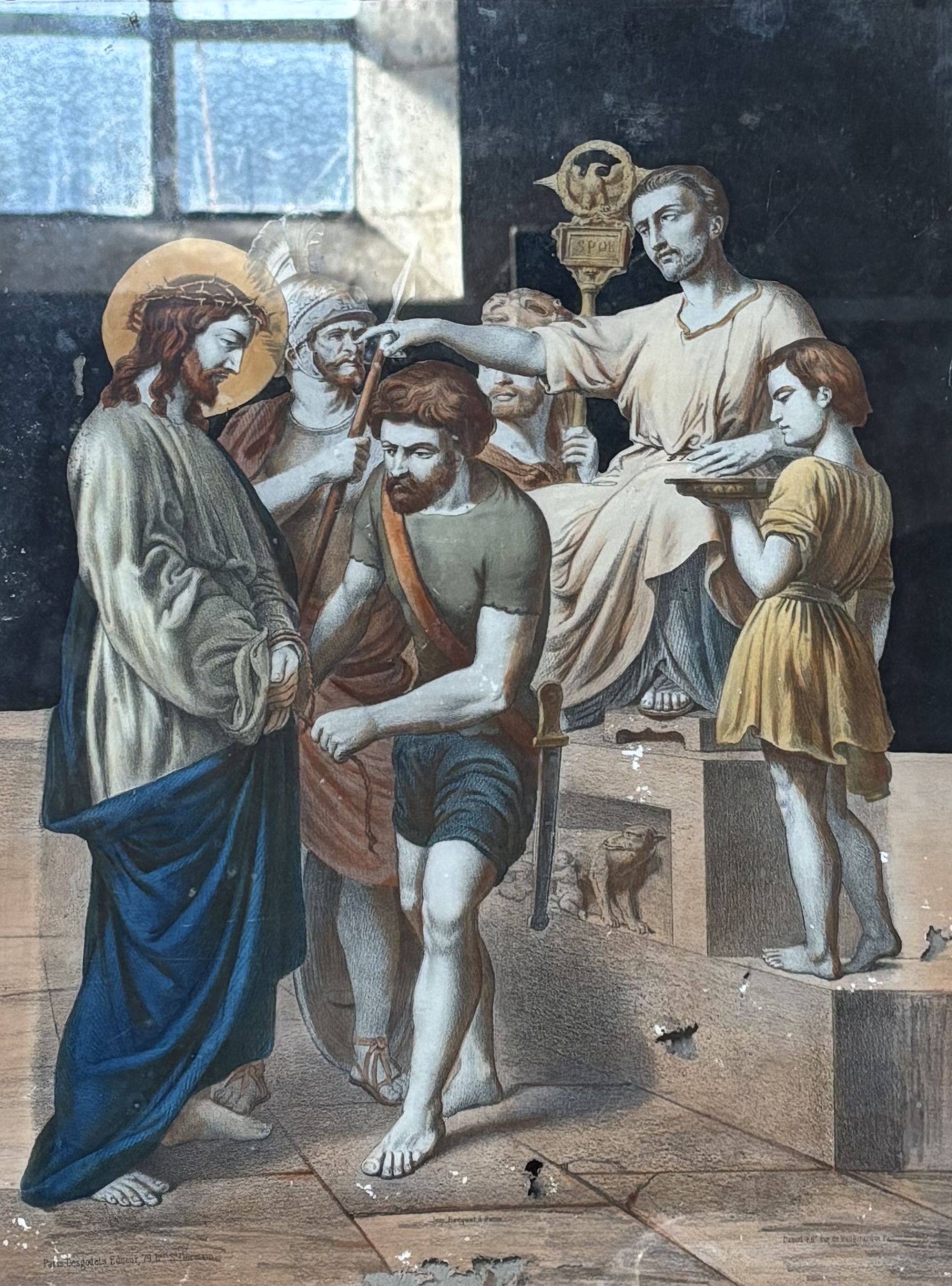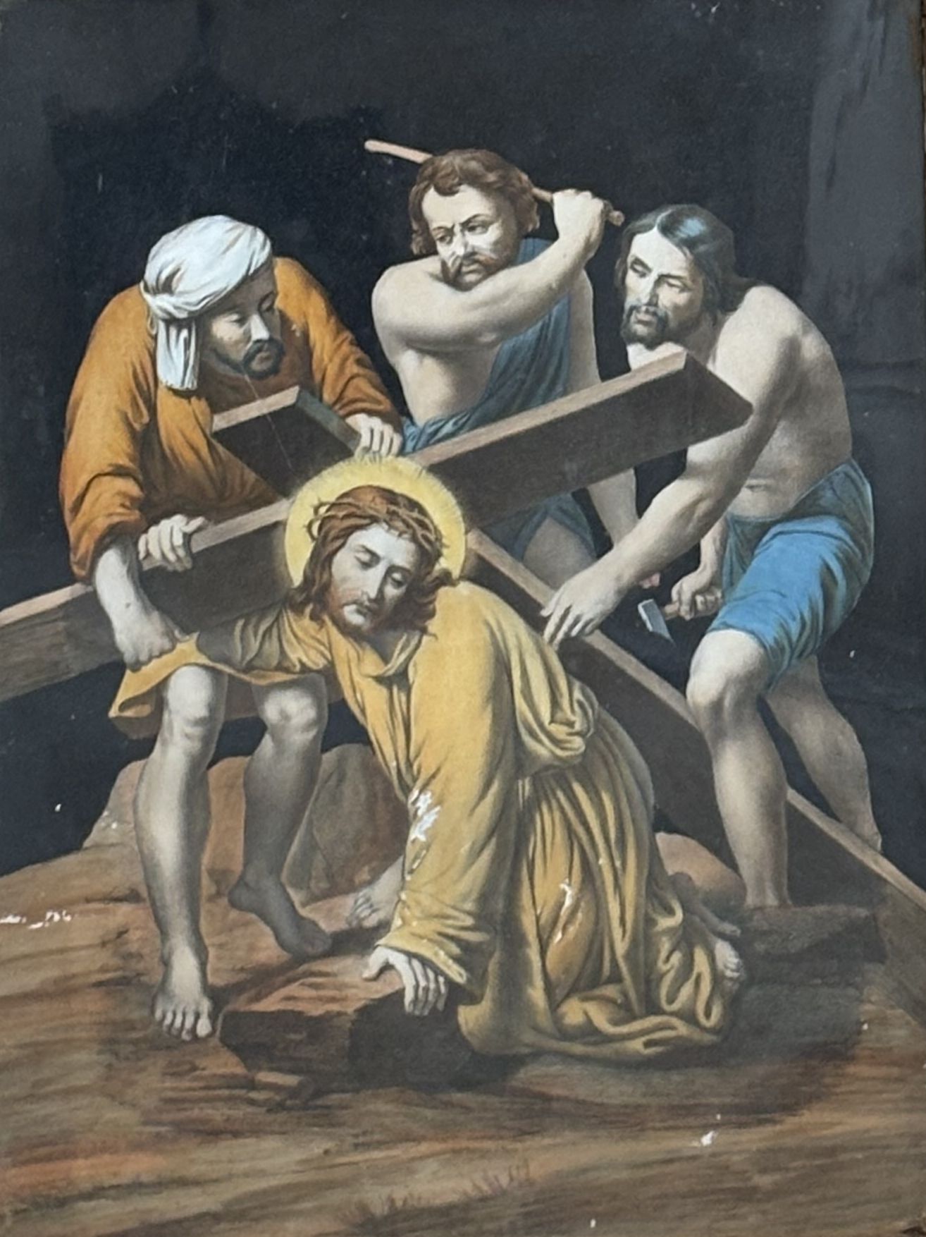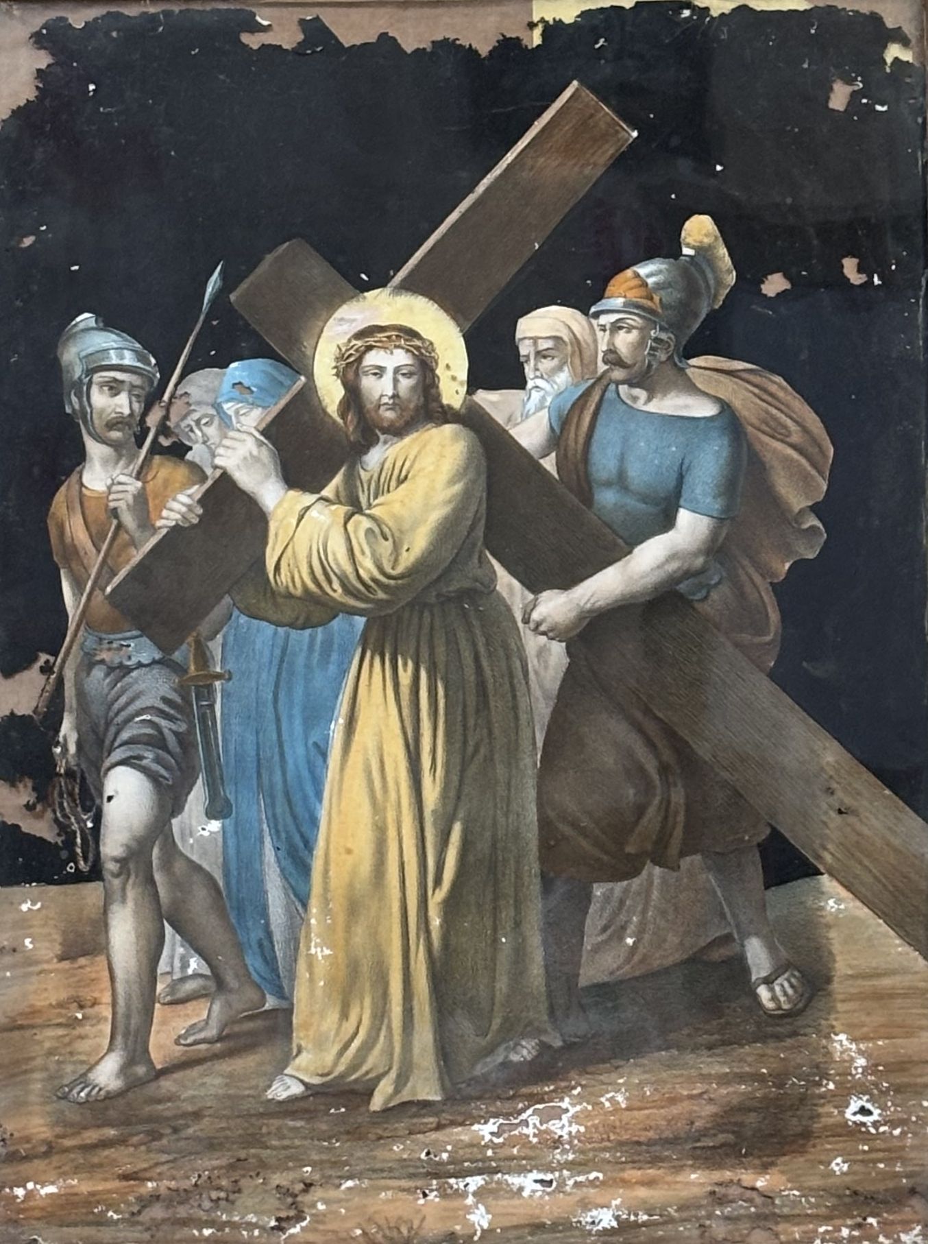 5e station : Simon de Cyrène aide Jésus à porter sa croix. |