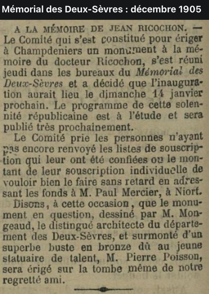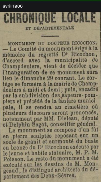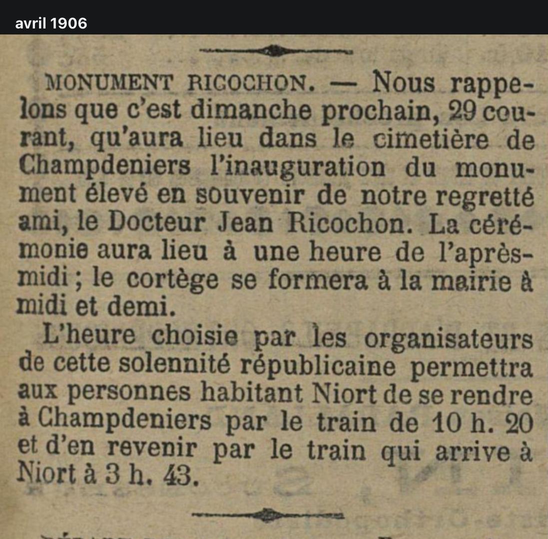 AU DOCTEUR Jean RICOCHON Conseiller Général des Deux-Sèvres SES AMIS