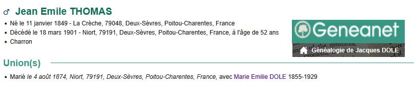 fils de Emile THOMAS et de Marie Emile DOLE |
