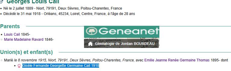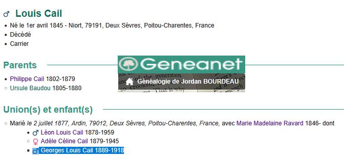 Georges CAIL époux de Germaine THOMAS Adjt 3. B.C.P. Croix de guerre médaille militaire Mort pour la France .. Mai 1918-29 ans