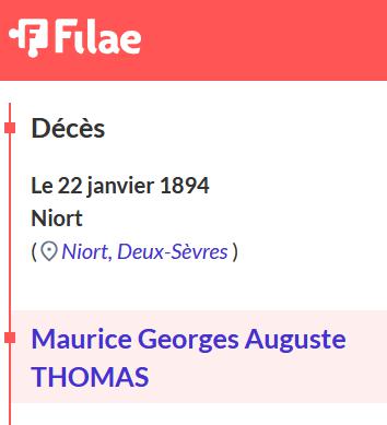 ... Maurice THOMAS .. 28 Juin 1878 le 21 Janvier 1894 au revoir chef fils – Emile THOMAS époux de Marie DOLE .. mars 1901 52 ans – .. CAIL 29 Aout 1916 |