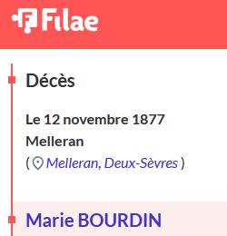 elle 16 ans née et domiciliée à MELLERAN fille de BOURDIN Jean Pierre proriétaire et de feue POITIERS Marie