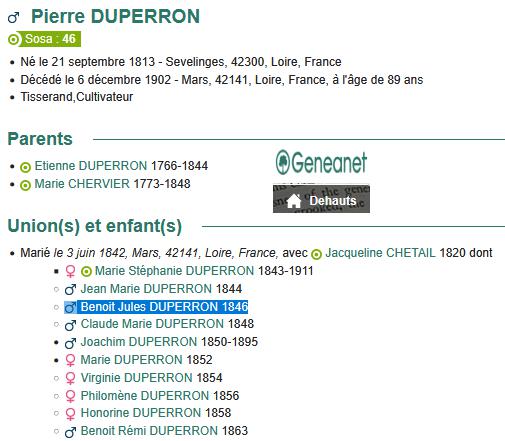 Benoit Jules né à MARS (LOIRE)