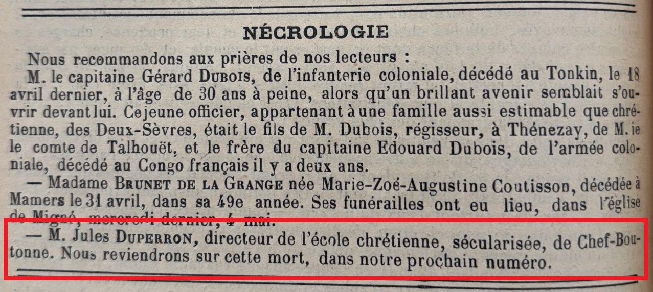 Décédé le 27 avril 1904 - Chef-Boutonne, 79083, Deux-Sèvres, Poitou-Charentes, France, à l'âge d'environ 57 ans