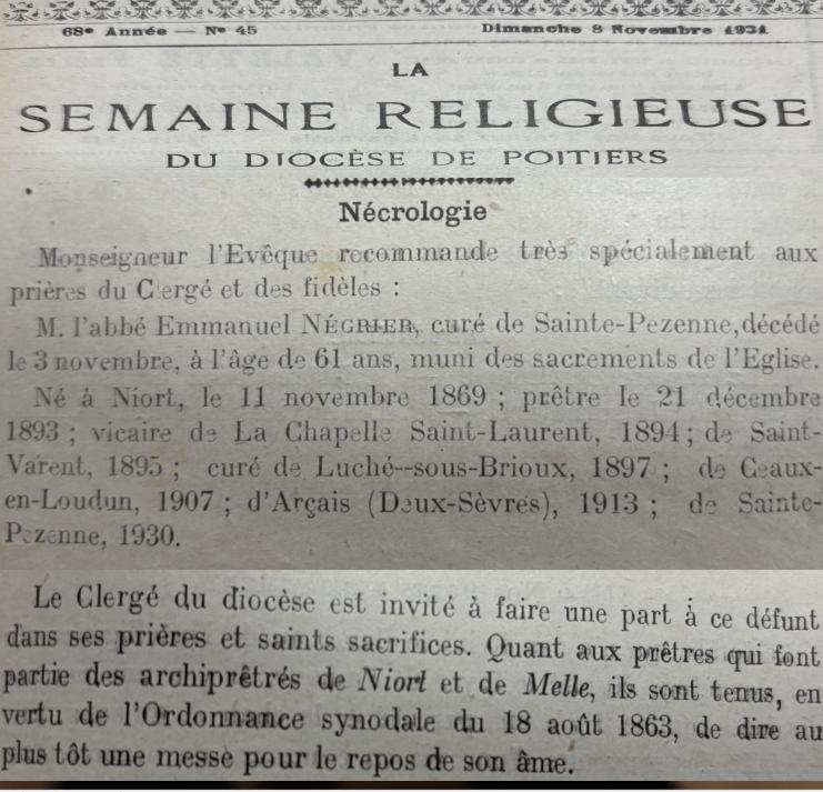Abbé Paul René Emmanuel NEGRIER (1869/1931)