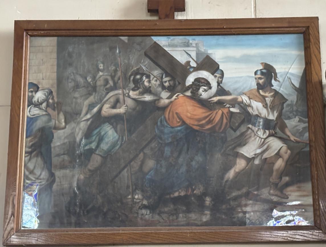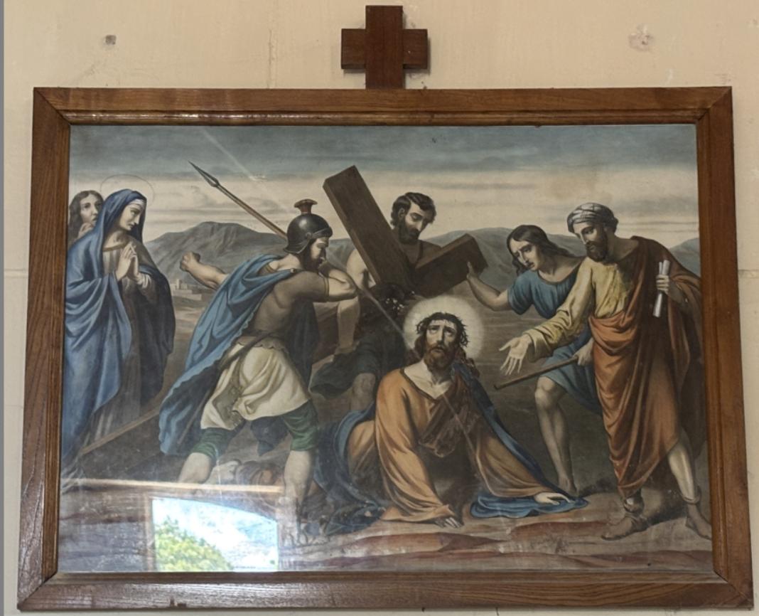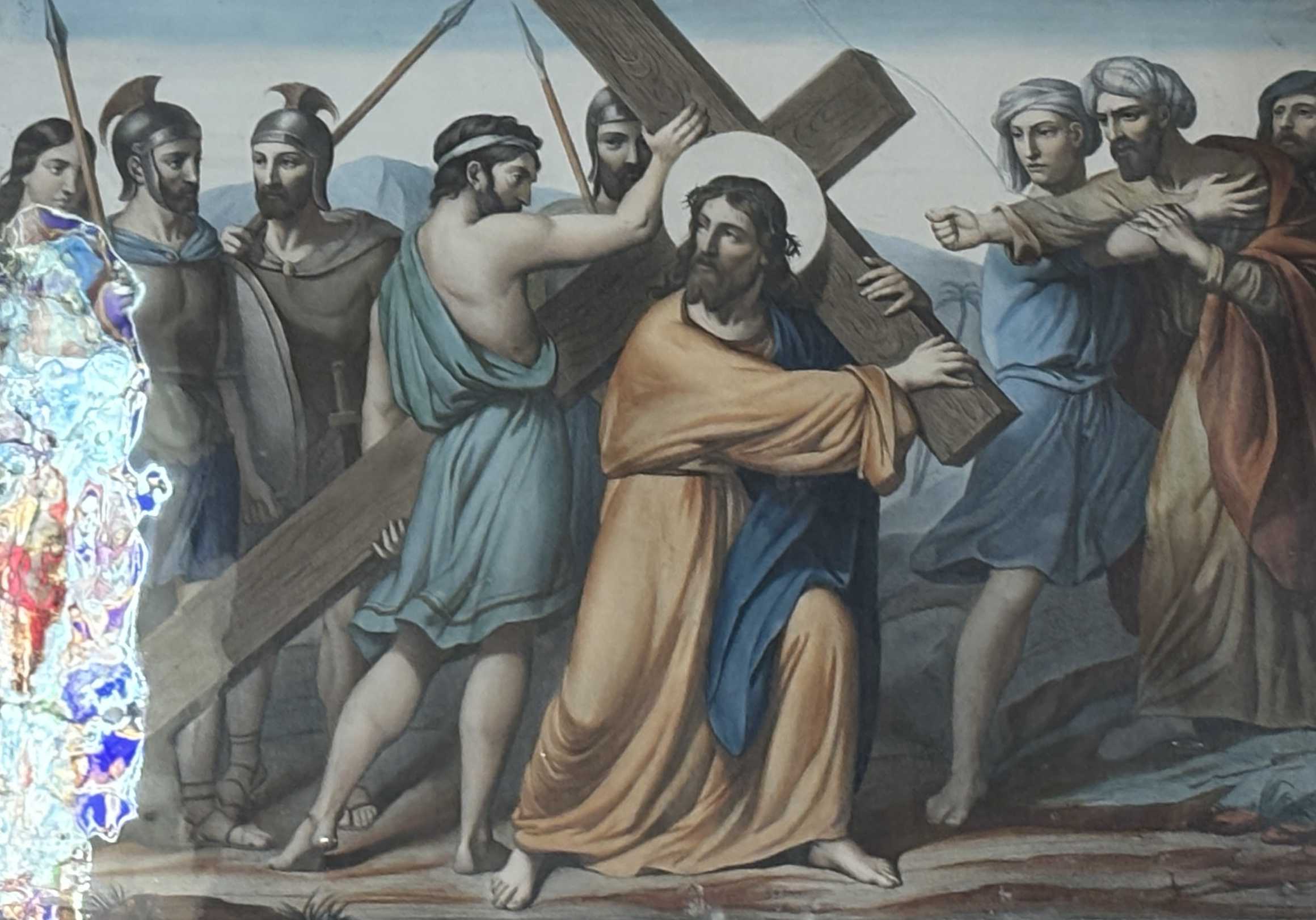 5e station : Simon de Cyrène aide Jésus à porter sa croix. |