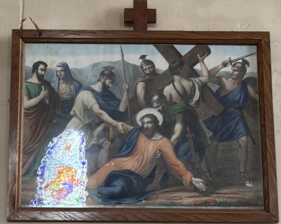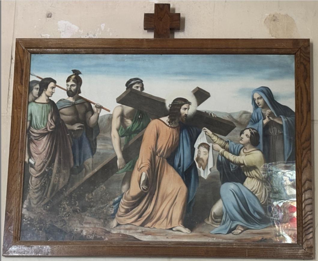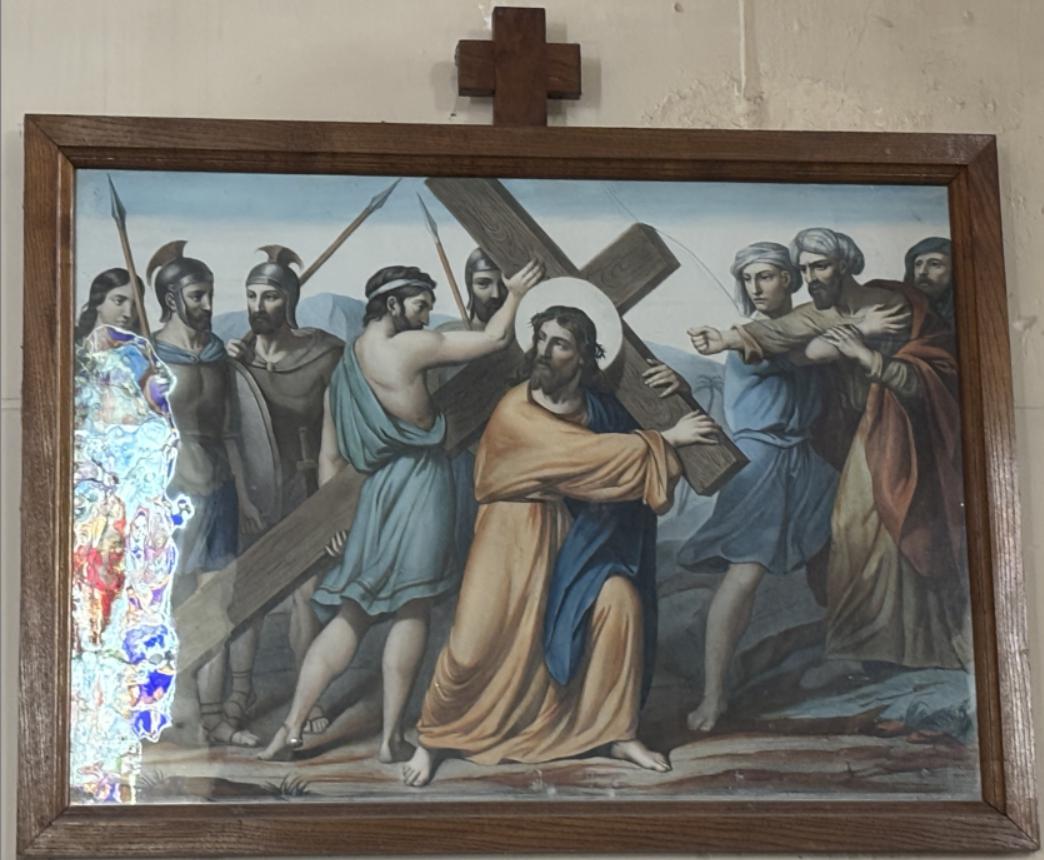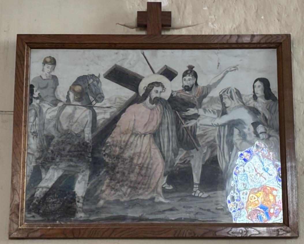 5e station : Simon de Cyrène aide Jésus à porter sa croix. |