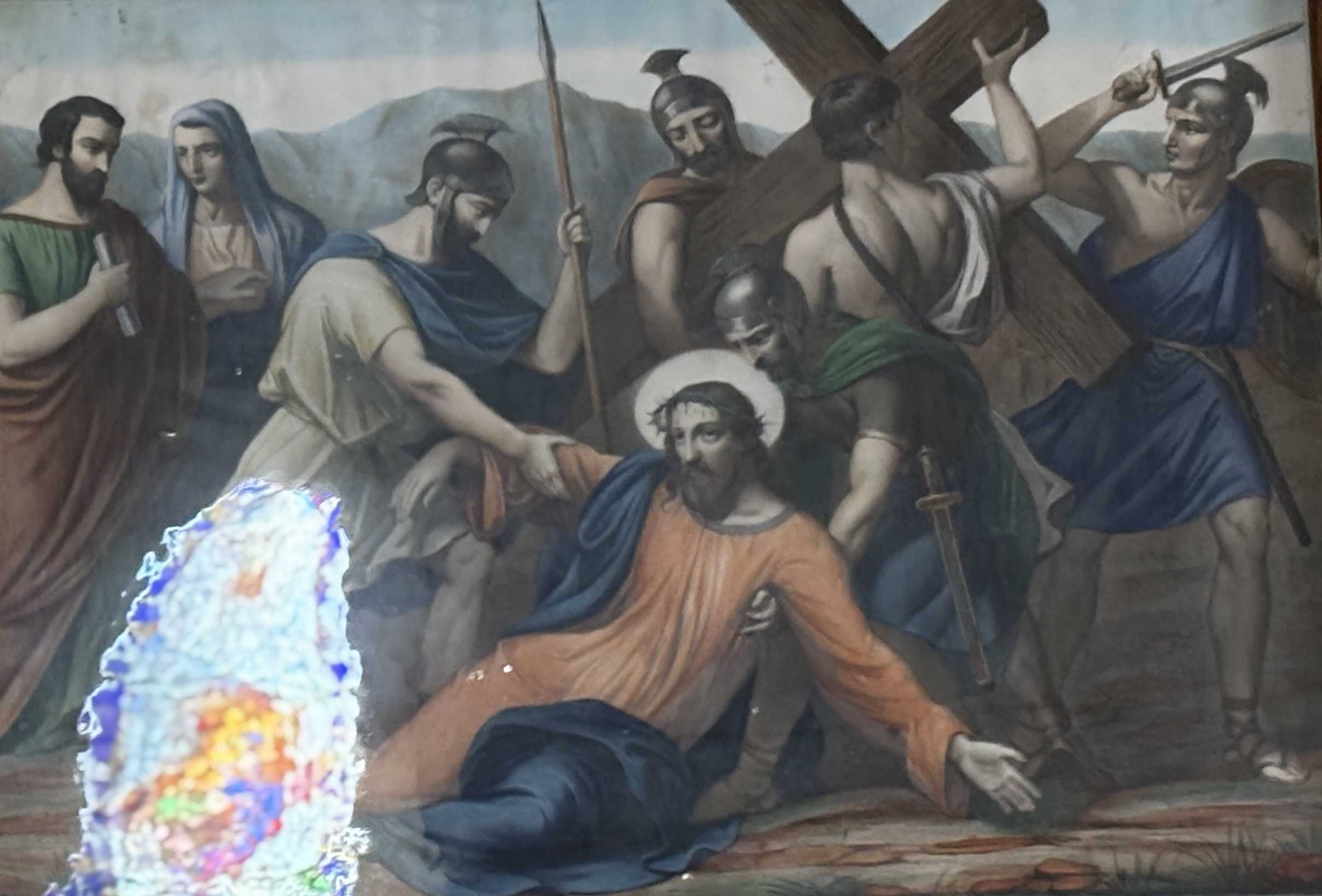 3e station : Jésus tombe sous le bois de la croix. |