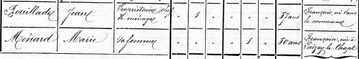 Leur fils FOUILLADE Jean né le 20/08/1815 à CREZIERES s'est marié avec Marie MENARD |