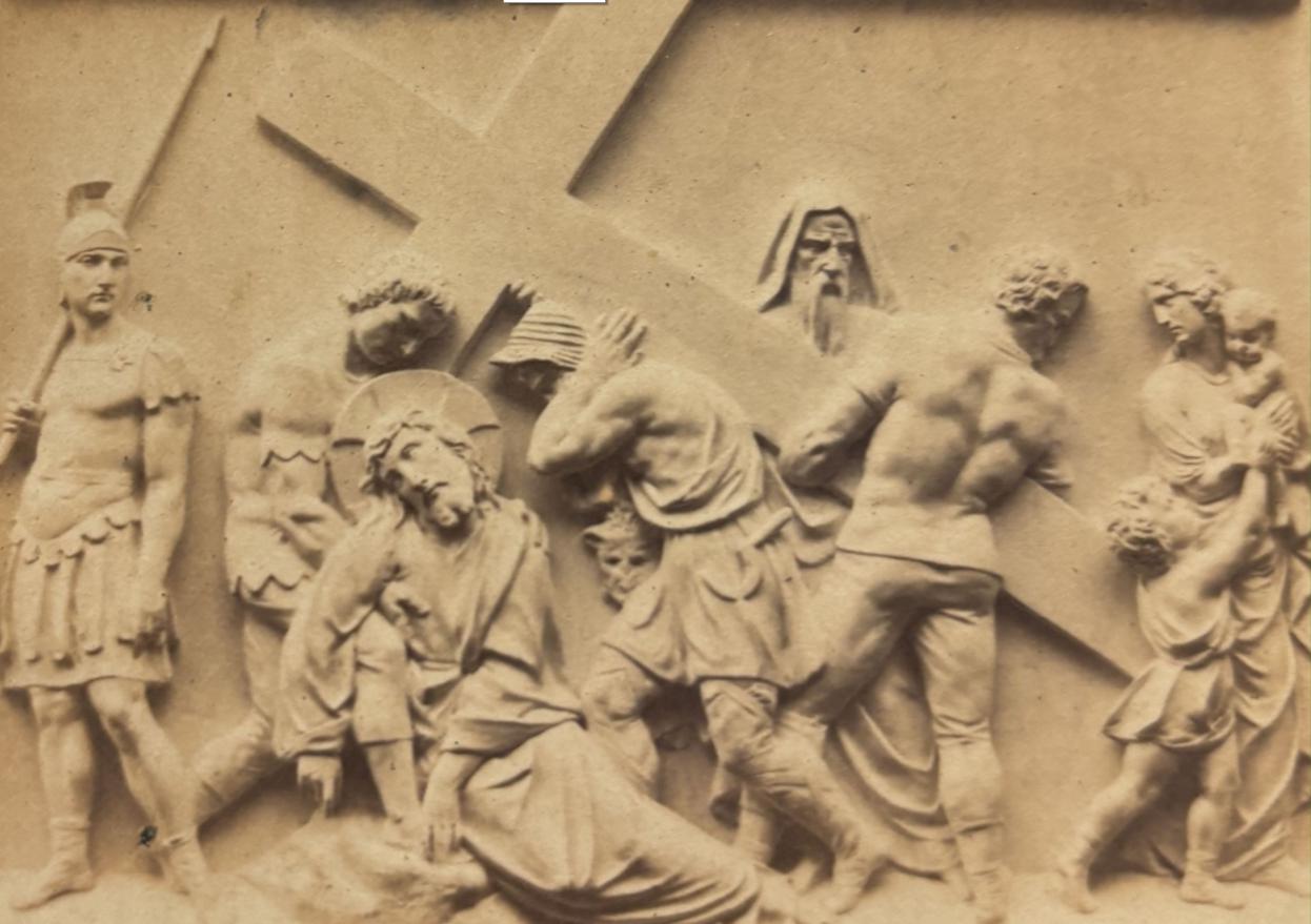 5e station : Simon de Cyrène aide Jésus à porter sa croix. |