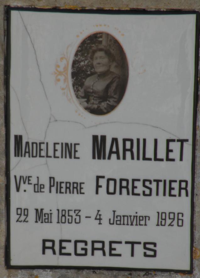 MADELEINE MARILLET Vve de Pierre FORESTIER 22 Mai 1853 – 4 Janvier 1926 REGRETS |