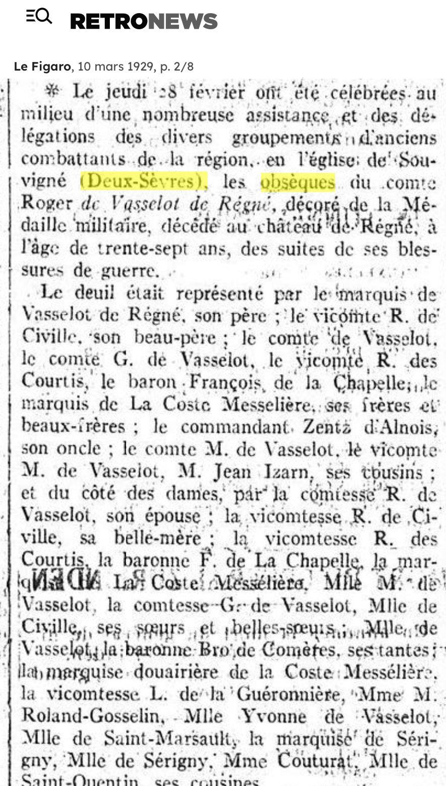 Marin Alexis de Vasselot d'Annemarie (1760-1836) « Le Vicomte de la Guillotière » Augustin Louis de Vasselot de Régné (1886-1911) Augustin Olivier de Vasselot de Régné (1925-1926) |