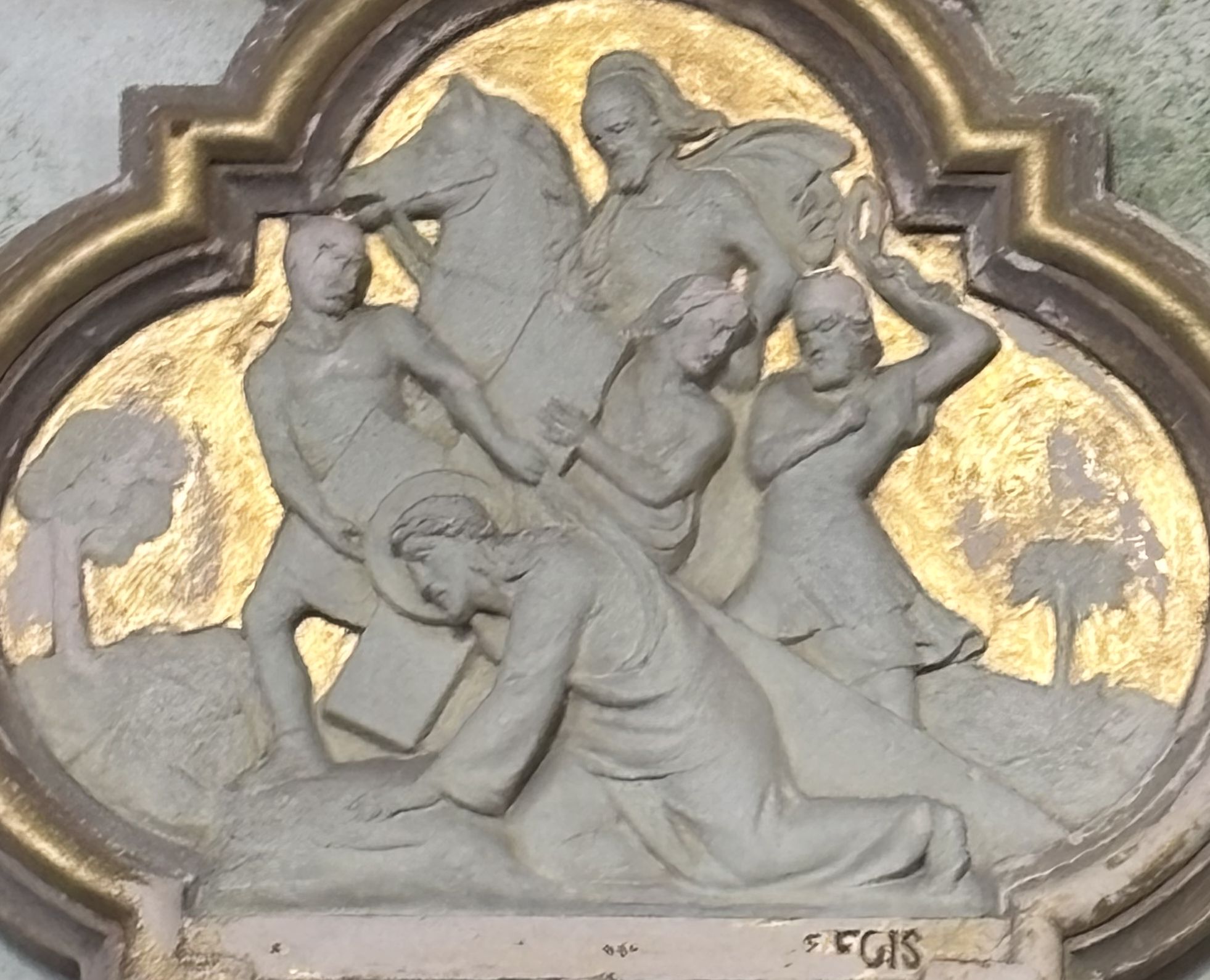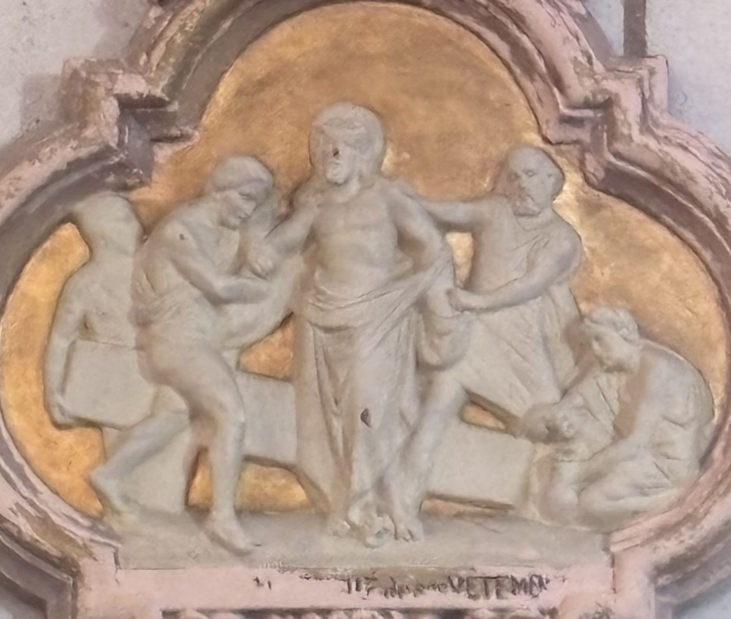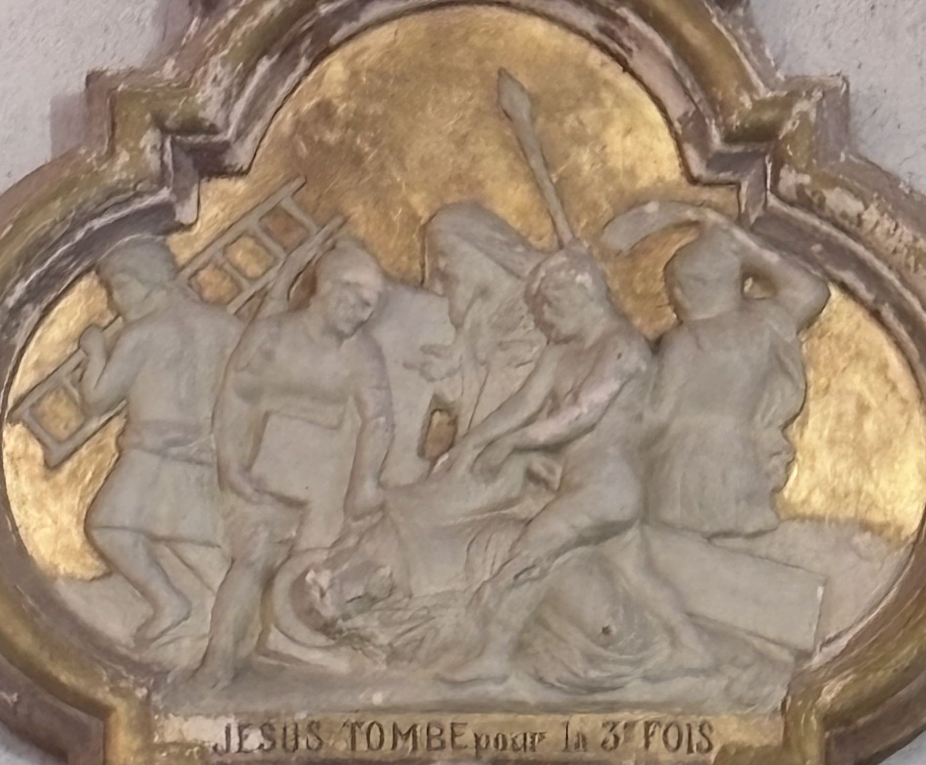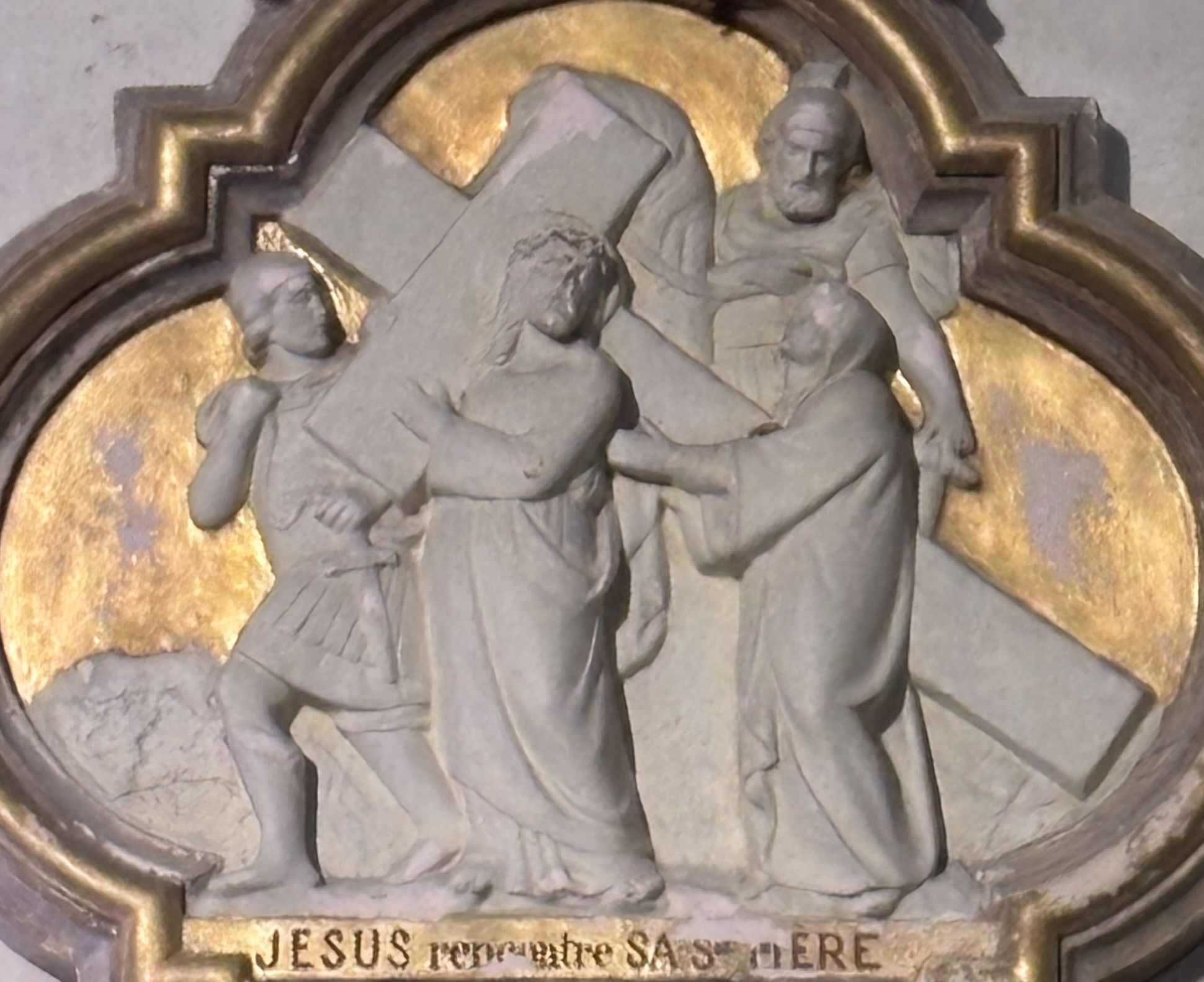 5e station : Simon de Cyrène aide Jésus à porter sa croix. |