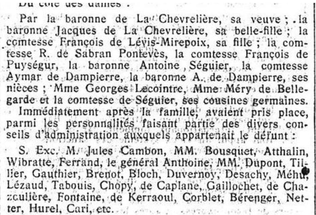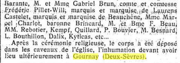 Les obsèques du Baron de la CHEVRELIERE en 1930 |