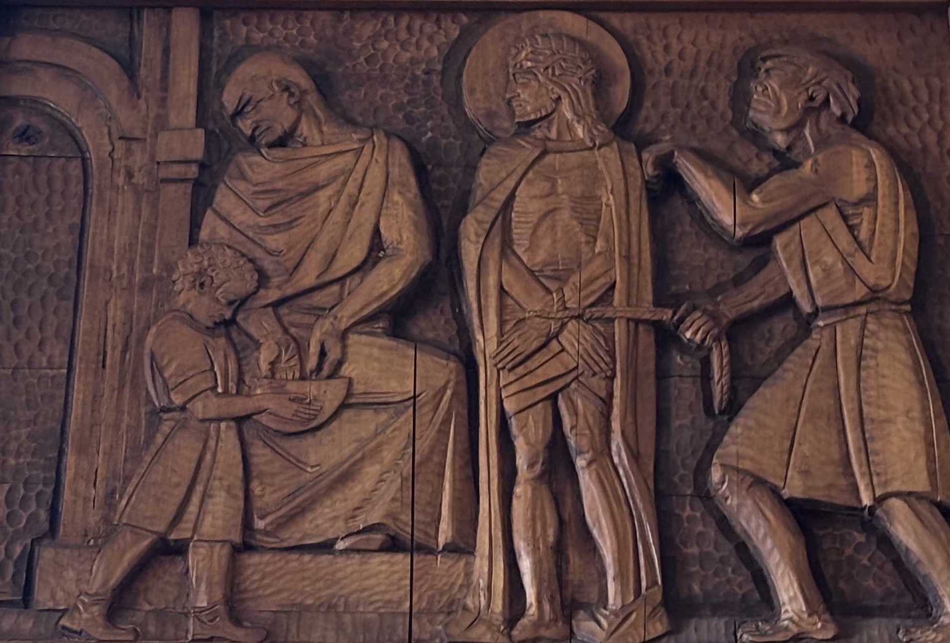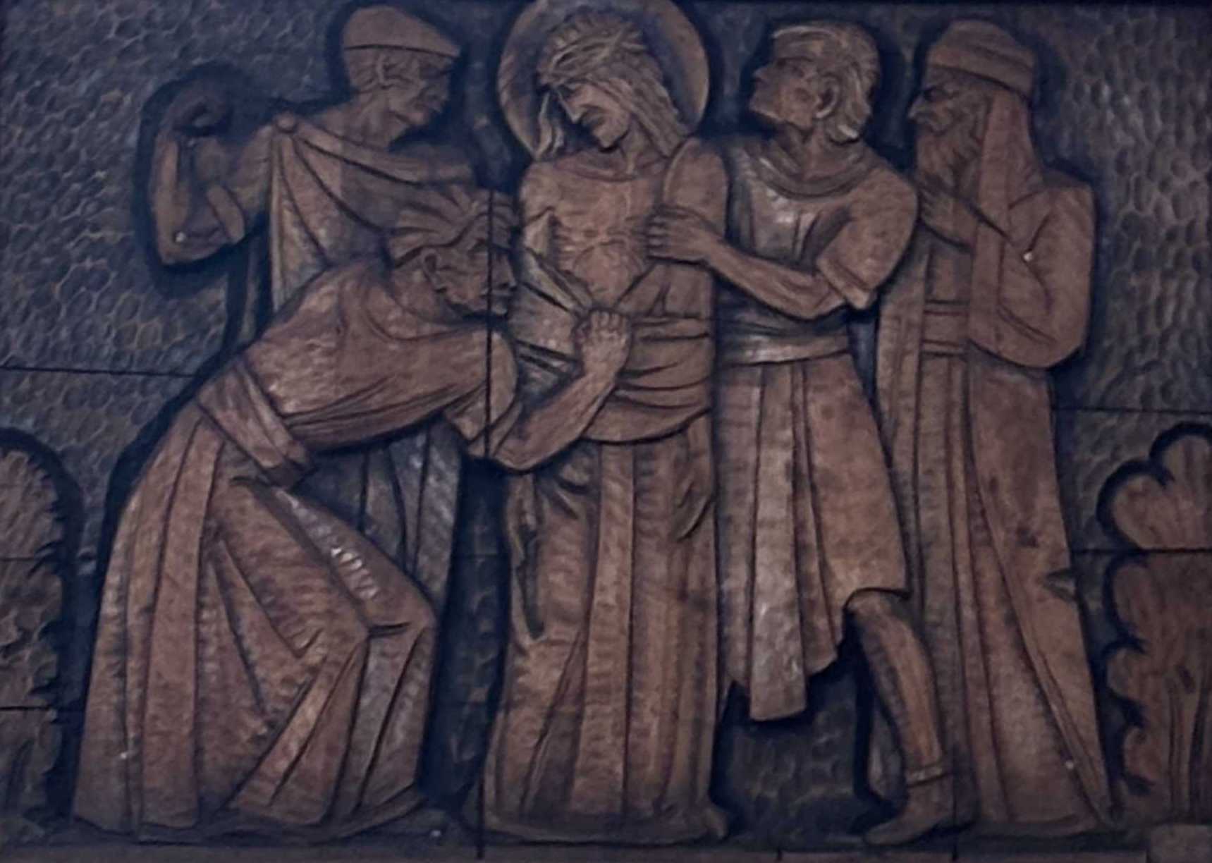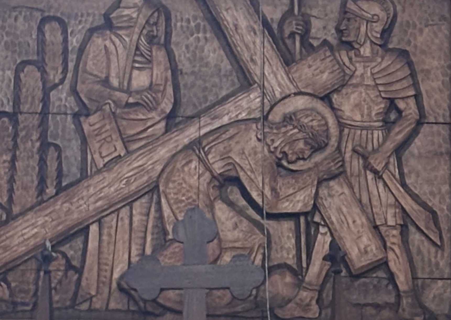 5e station : Simon de Cyrène aide Jésus à porter sa croix. |