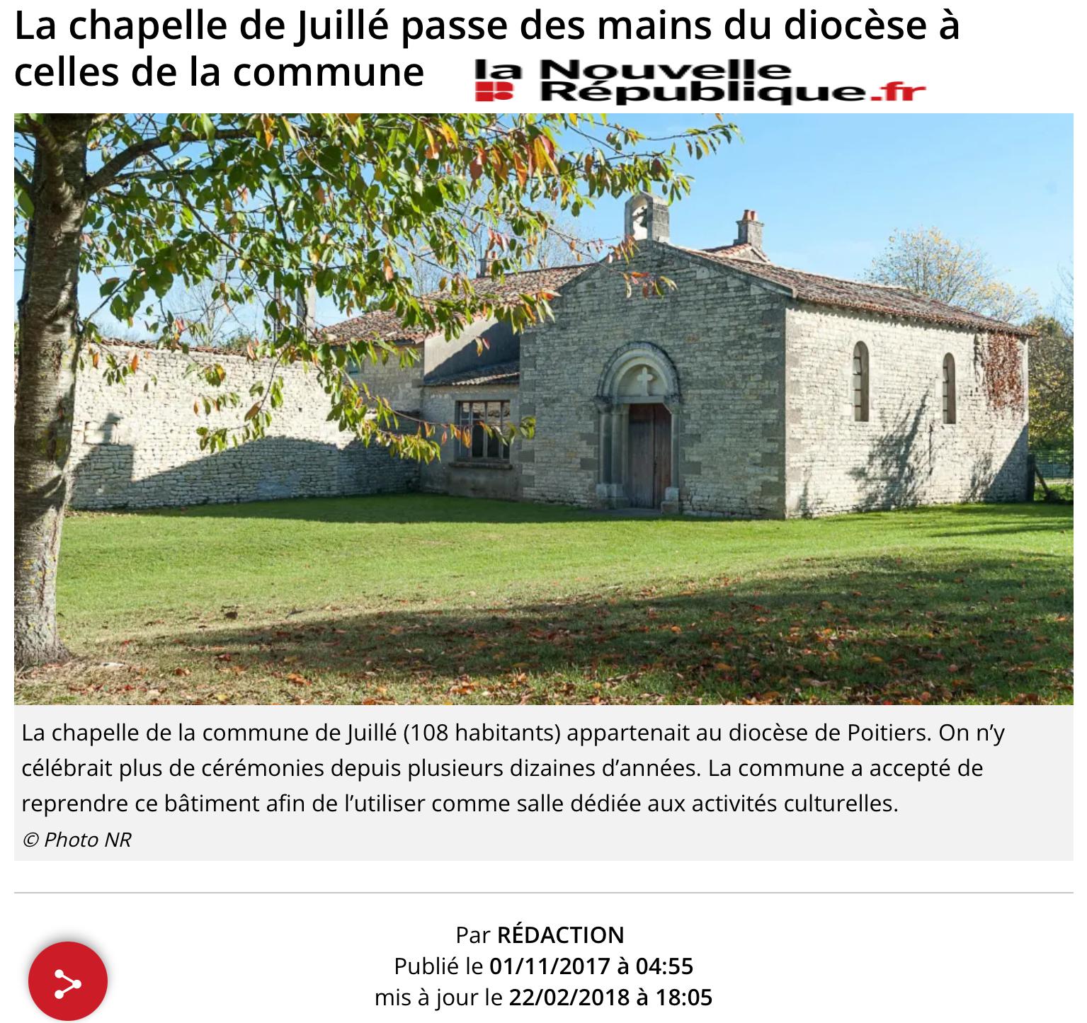 Reportage de FR3 Poitou Charentes en octobre 2017 (Chapelle de JUILLE et église de CHERIGNE) |
