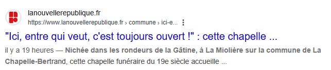 « Jamais trouvé de corps » Son histoire se veut aussi bien atypique que pleine de mystères. Ce qui est sûr, c’est que cet édifice a été bâti par Guy Thibault, marchand de biens devenu maire de la commune de 1816 à 1850, année de sa mort. Impossible cependant de connaître la date exacte de sa construction. « Sa femme, Marie Labrousse, qui est décédée en 1826, était propriétaire du terrain. Cela aurait pu avoir lieu entre sa mort et la bénédiction de la chapelle, le 19 juin 1833 » |