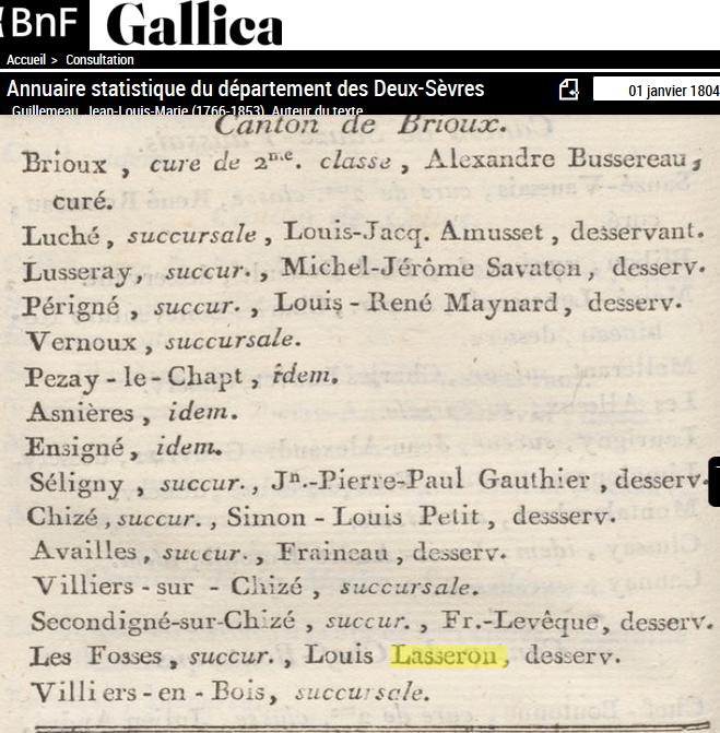De 1865 à 1815, 50 ans curé à LES FOSSES (79) |