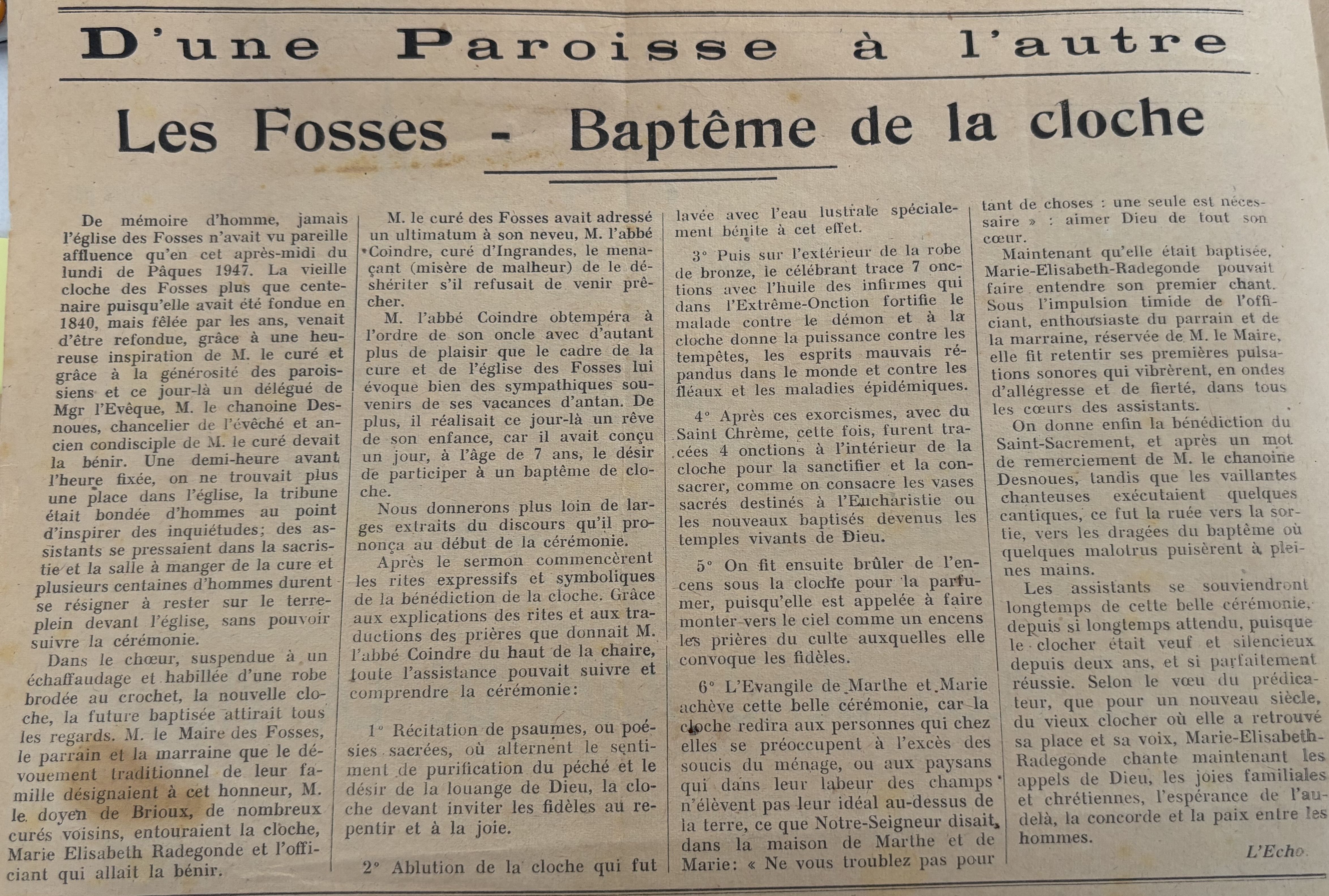 relaté dans le journal paroissial « L'ECHO DE LA BOUTONNE » |