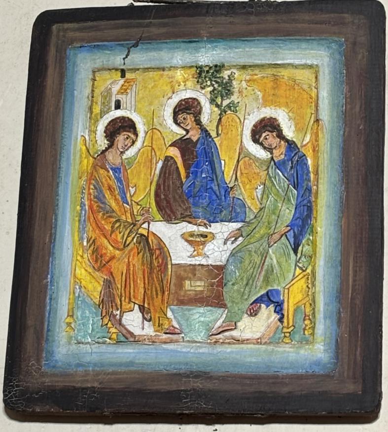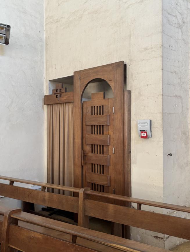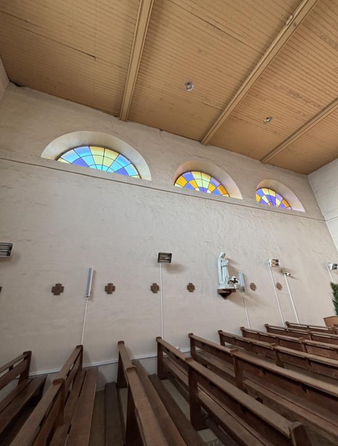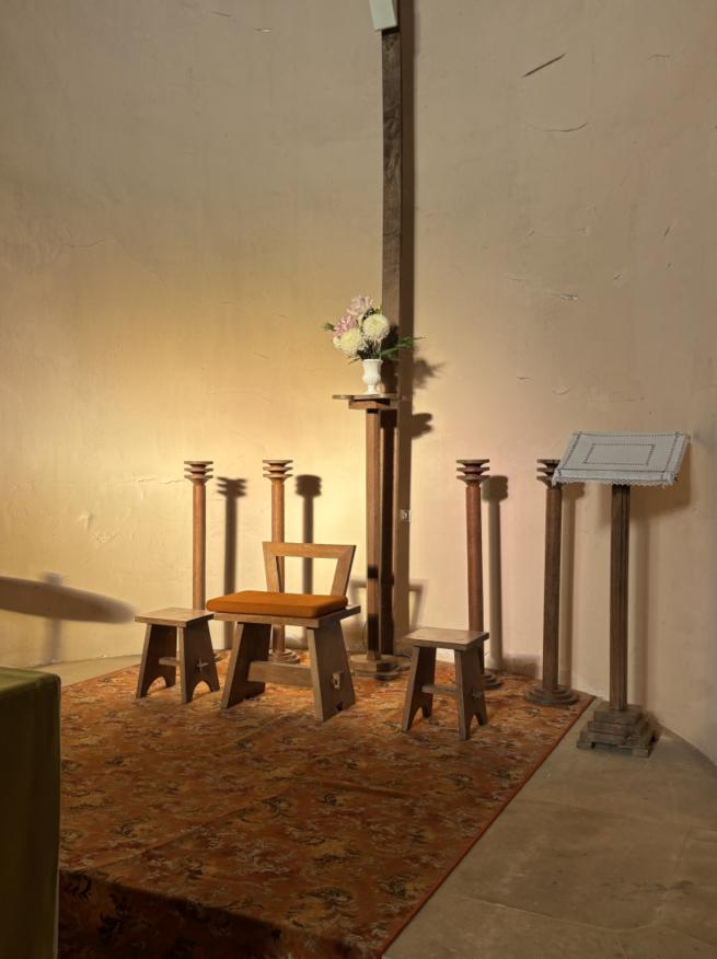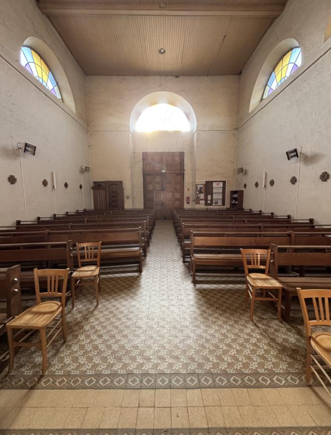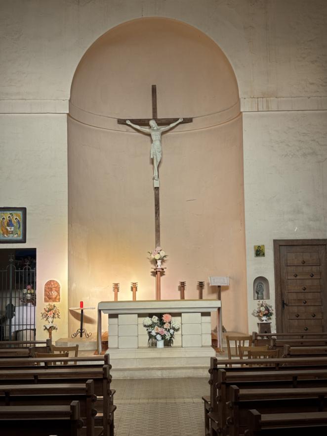La crêche 2025 installée à l'entrée des fonds baptismaux