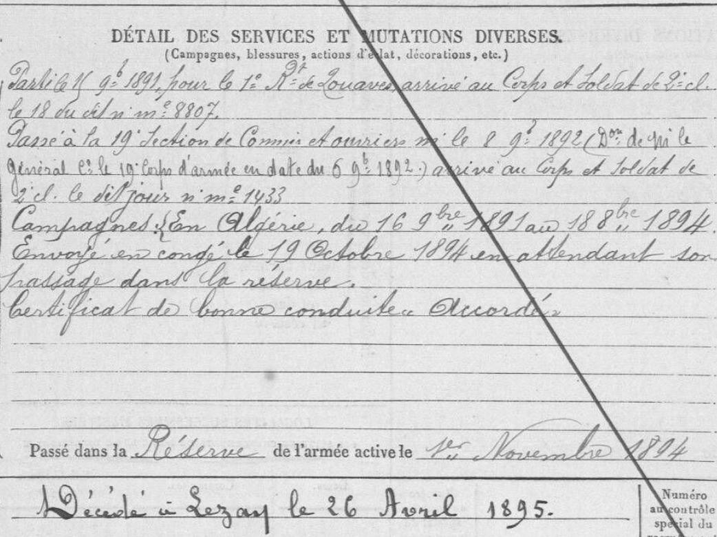 Le fils a fait le zouave en Algérie durant 3 ans de 1891à 1894
