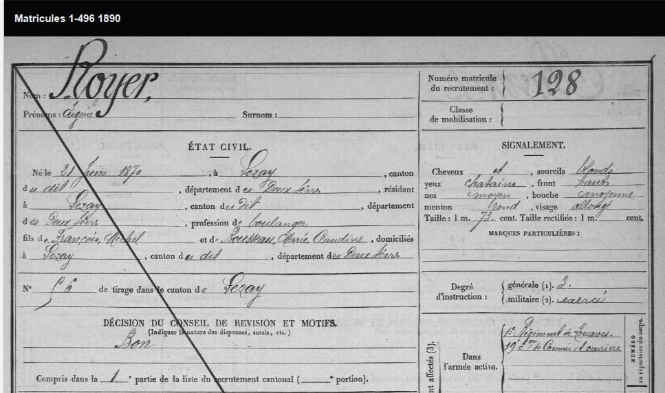 Ici repos le corps de Eugène ROYER fils de Michel ROYER et de Marie ROUSSEAU né à Lezay le 21 Juin 1870 décédé à Lezay le 26 Avril 1895 Regrets Eternels de ses parents |
