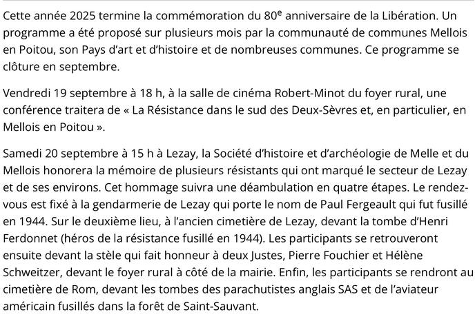 Dans l'après midi du samedi 20/09/2025 un hommage lui a été rendu par la société historique de MELLE