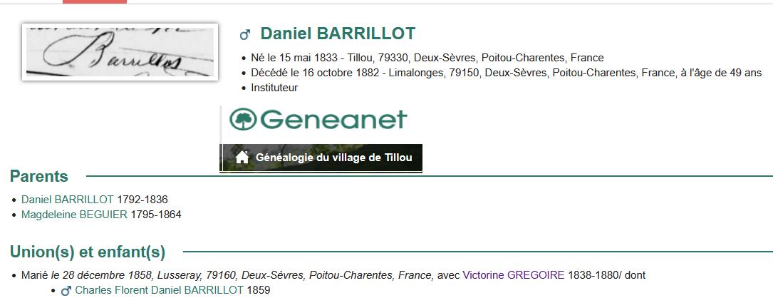 Marié à LUSSERAY (79) , le 28 Décembre 1858